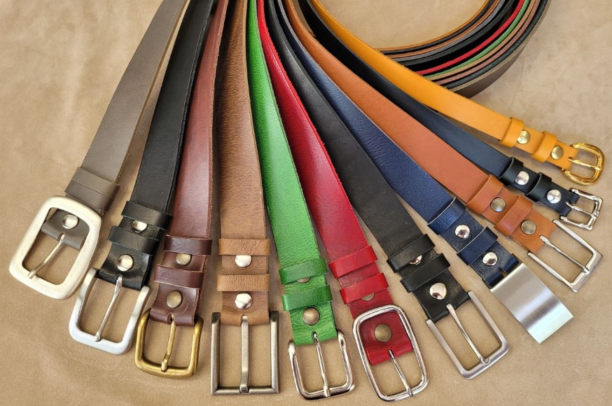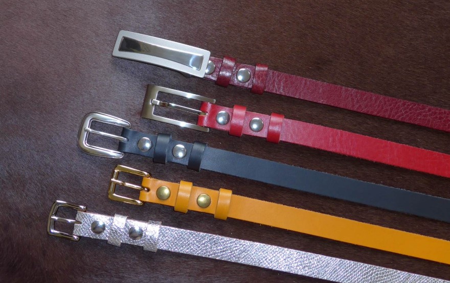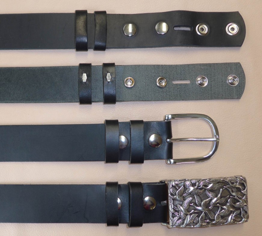 Wir fertigen auch Gürtel, bei dem die Schnalle mit einem Druckknopf gehalten wird. So haben Sie die Möglichkeit, die Schließe passend zur Stimmung oder zum Outfit, zu wechseln.