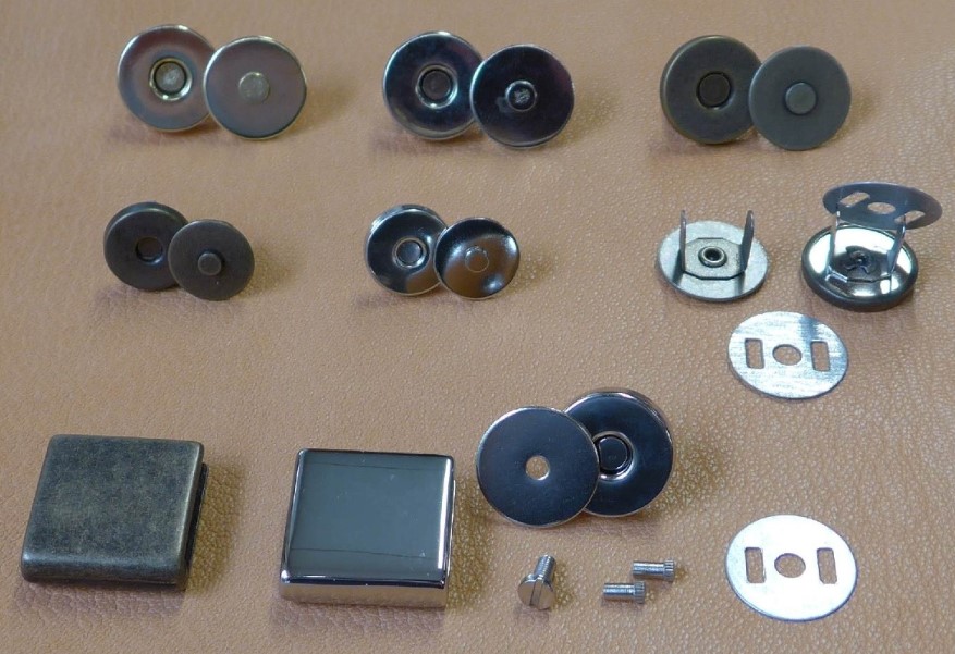Magnetverschlüsse für Taschen, Ø 14,5 und 19 mm, als Blende 24x24 mm, in den Farben Nickel, Messing und Altmessing