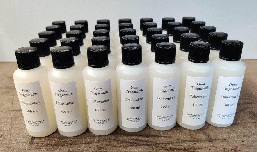 Gum Tragacanth ist ein aus natürlichem Gummi, auf Wasserbasis, hergestelltes Mittel zum Glättet und Polieren von Kanten. Die Kante bekommt dadurch eine glatte und widerstandsfähig Oberfläche.
