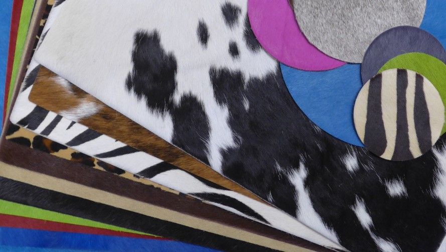 Sehr gut geeignet als Platz- und Tischset, langlebig, unempfindlich und leicht zu reinigen. Rinderfell zum Teil naturbelassen oder gefärbt. In vier Größen, 4,00 bis 35,00 €/Stück, Rinderfell.