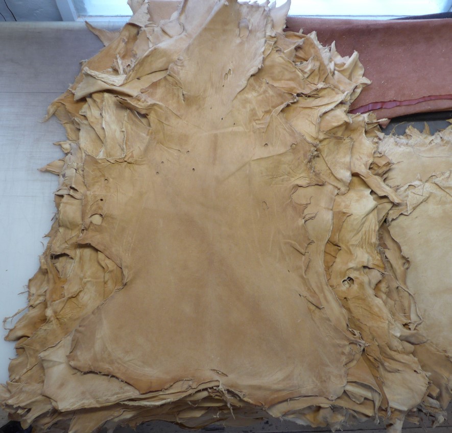 Rehleder sämisch gegerbt, ca. 1,2 mm dick, urig, zum Teil mit Schußlöcher. Preis: 12,- und 15,.€/Stück
