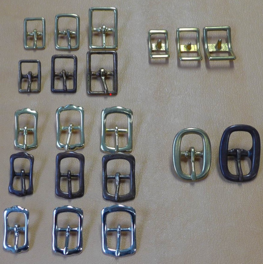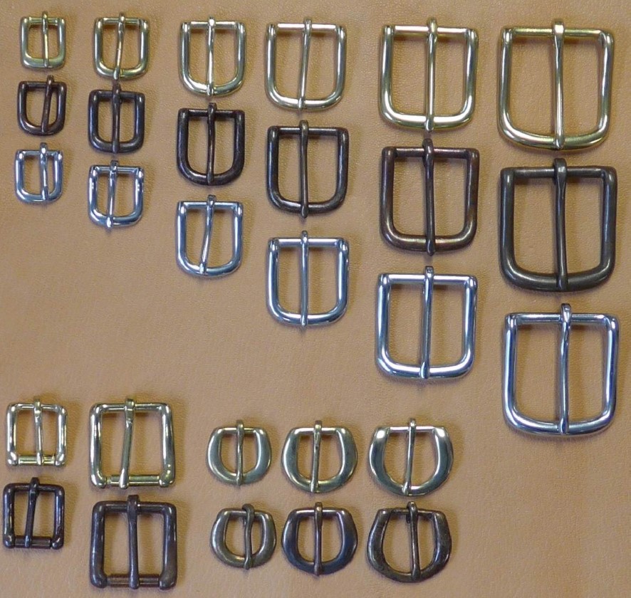 Geschirrschnallen, massiv Messing, brüniert oder Edelstahl, 1/2‘‘, 5/8‘‘, 3/4‘‘, 1‘‘, 11/4‘‘ und 1 1/2‘‘ Rollschnalle, massiv Messing und brüniert, 5/8‘‘ und 1‘‘