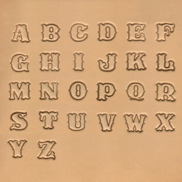 Alphabet-Set bestehend aus 26 Buchstaben und einen Stempelgriff.