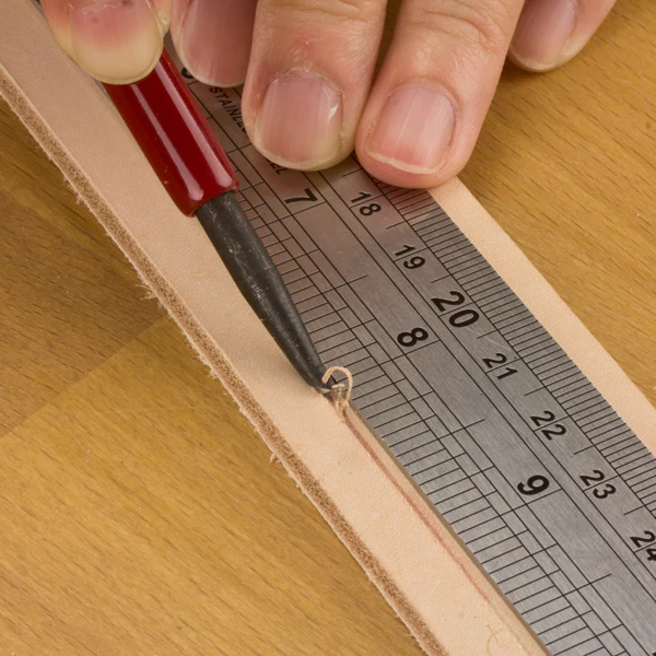 Dies ist ein solider, einfacher Rillenzieher ohne Anschlag. Zu benutzen für Kurven oder mit Lineal für gerade Strecken.