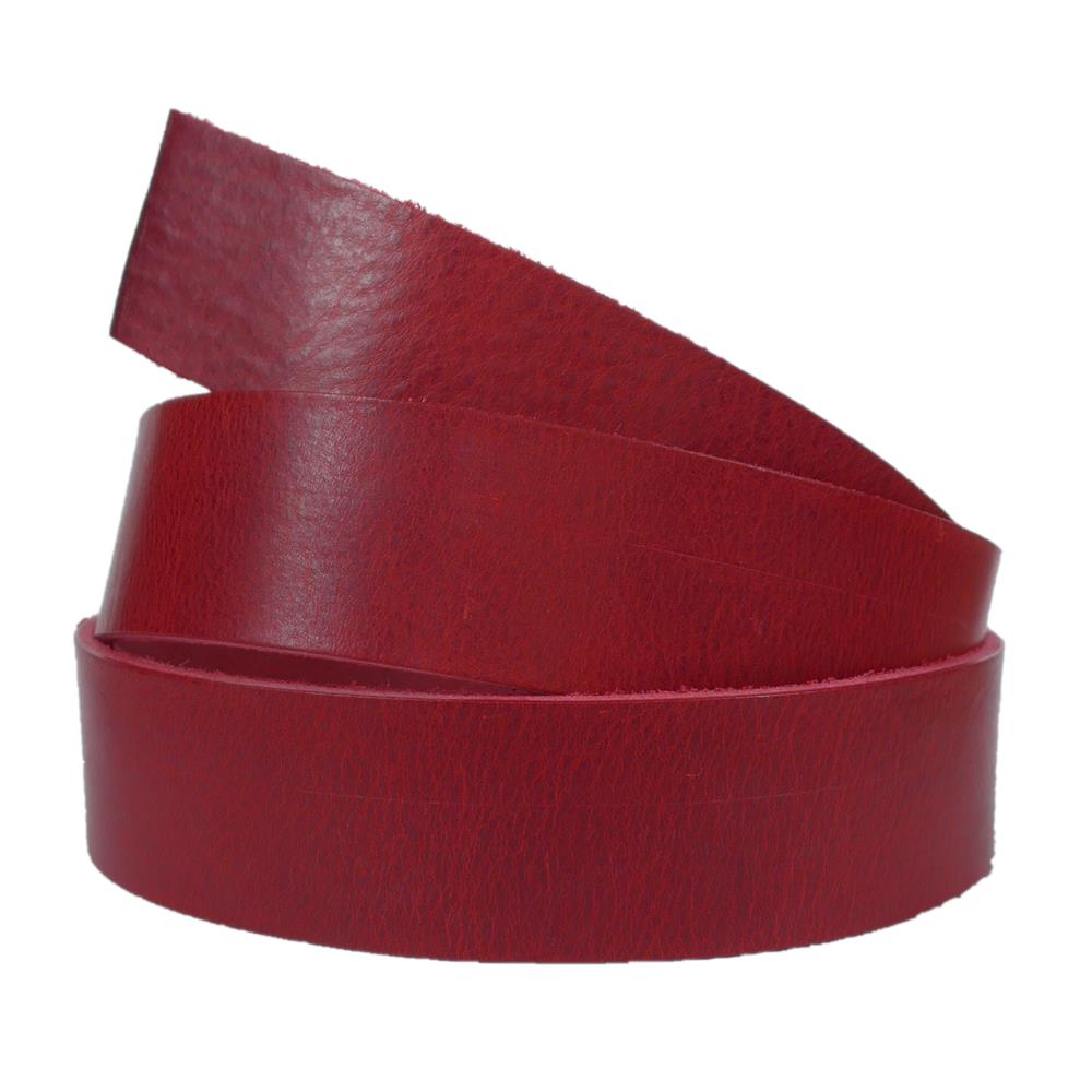 Der Gürtelriemen „Missouri“ hat einen weichen, geschmeidigen Griff. Beim Biegen zeigt sich der typische Pull up Effekt, welches der Oberfläche ein interessantes, lebendiges Aussehen gibt. Das rote Fettleder ist durchgefärbt und auf der Fleischseite glatt zugerichtet.