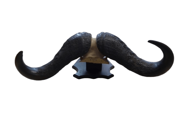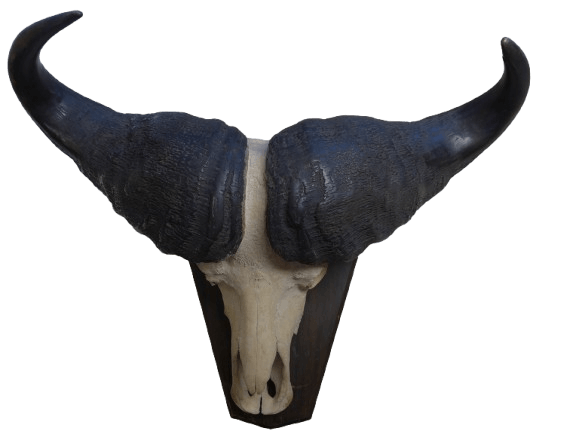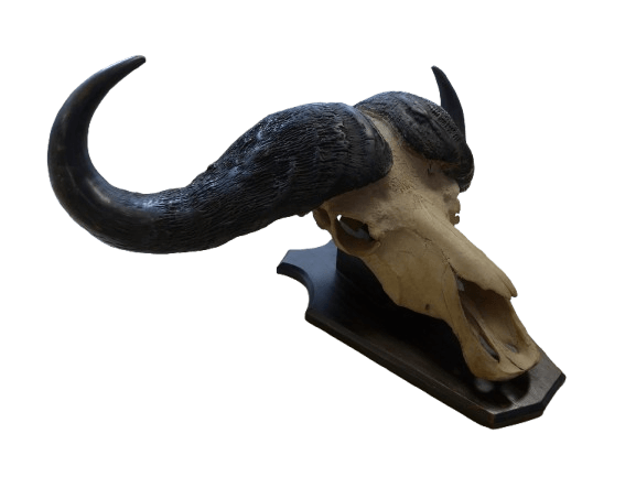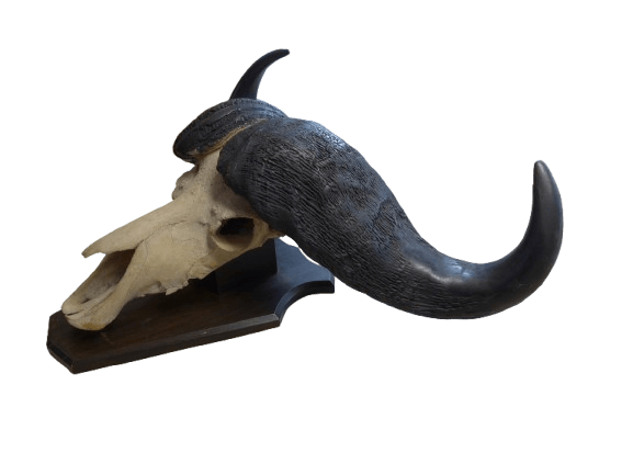 Dieser imposante Kaffernbüffelschädel wurde uns vor Jahren zugetragen, er war damals schon alt und gebraucht. Bei uns im Geschäft fand er jedoch nie einen Platz zur Dekoration an die Wand. Jetzt möchten wir ihn abgeben. Die Verbindung zwischen Schädel und Trophäenbrett hat etwas Spiel, ohne Auswirkung auf die Hängung.