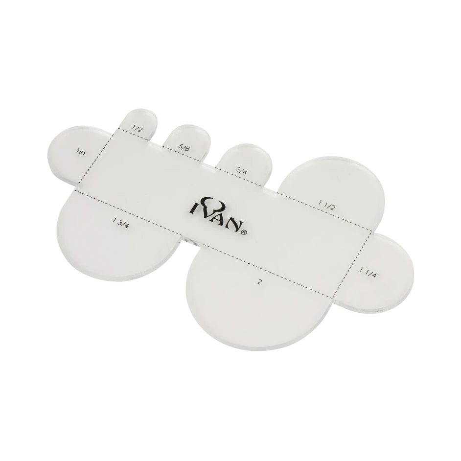 Mit dieser Schablone lassen sich leicht, perfekt abgerundete Riemenende anzeichnen. Für eine Riemenbreite von ca. 1,3 cm (1/2“), 1,6 cm (5/8“), 1,9 cm (3/4“), 3,8 cm (1 1/2“), 2,5 cm (1“), 3,1 cm (1 1/4“), 4,4 cm (1 3/4“) und5 cm (2“)