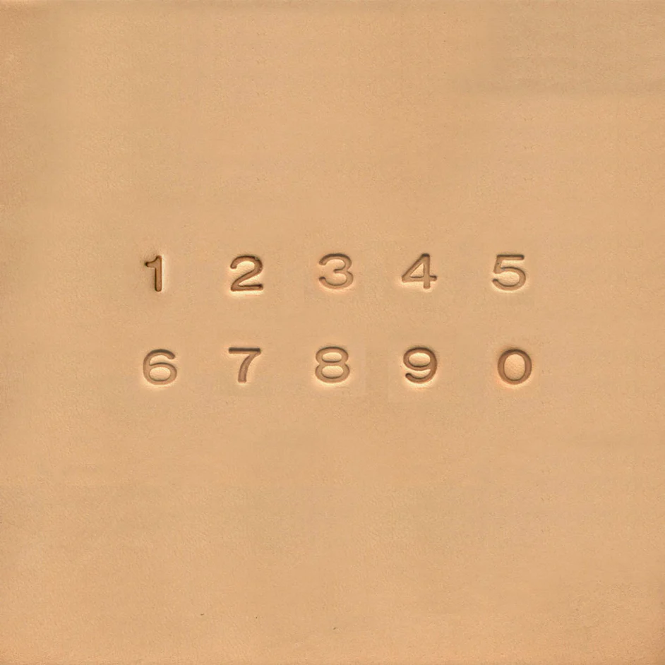 Zahlen-Set bestehend aus den Zahlen 0 bis 9 und einen Stempelgriff.